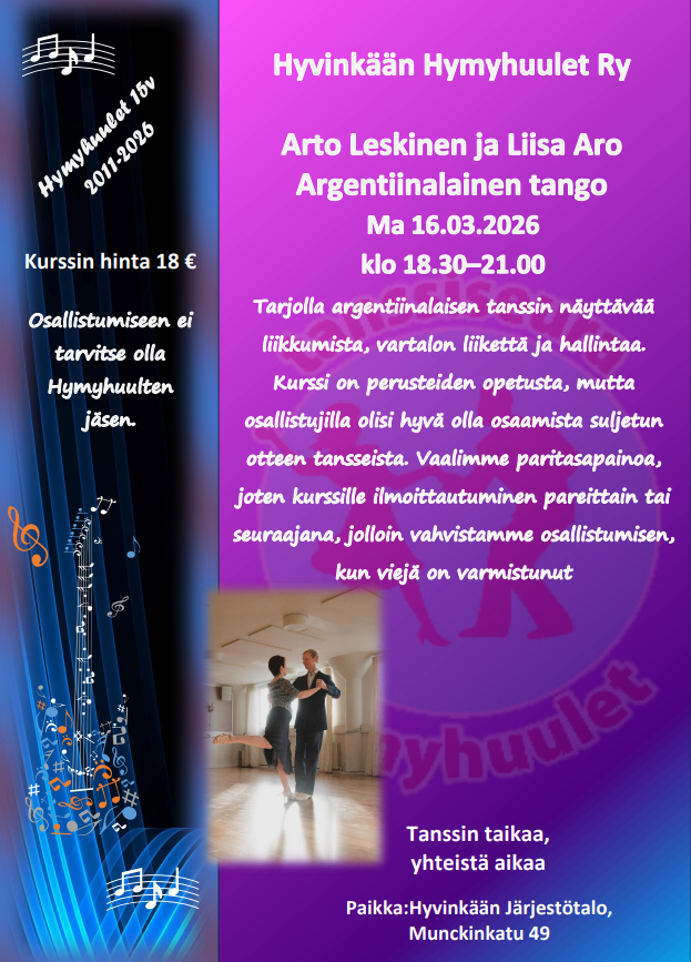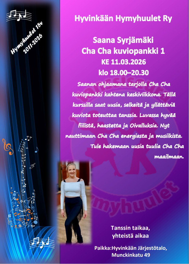 Seuratanssiharrastuksen aloittaminen on helppoa ja hauskaa. Alkuun pääset tulemalla tutustumaan toimintaan Hymyhuulten harjoituksiin. Mukaan tarvitset mukavat kengän, juomapullon sekä reipasta, iloista mieltä.