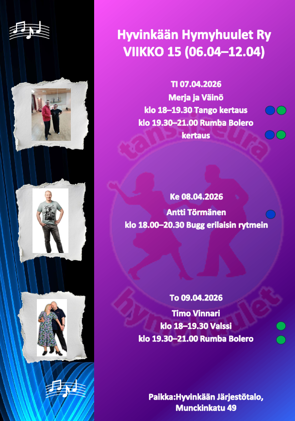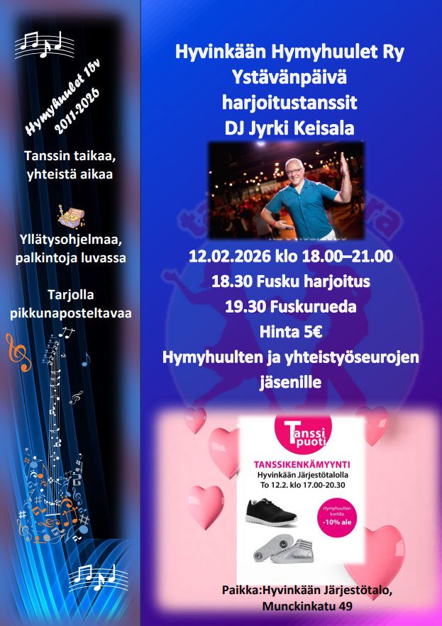 -saat 2 euron alennuksen Hyvinkään Järjestötalon tansseista näyttämällä jäsenkortin