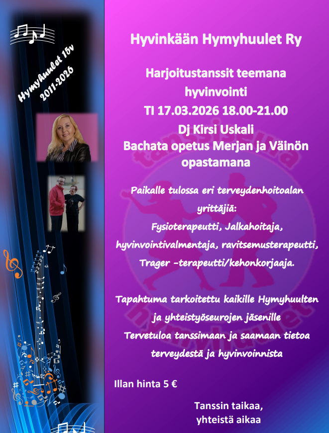 Hyvinkään Hymyhuulet ry on jäsenseurana Suomen Seuratanssiliitossa (SUSEL ry). SUSEL:in jäsenseuran jäsenenä saat rahanarvoisia etuja usealla tanssipaikalla ympäri maan näyttämällä SUSEL-jäsenkorttisi.