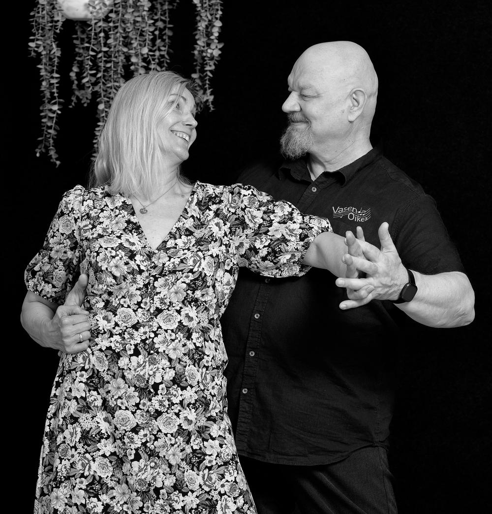 Yhteistä tanssinopetusta meillä on takana yli 10 vuotta ja Merjalla toinen rupeama lisää. Väinö on suorittanut tanssinohjaajatutkinnon ja Merja on suorittanut tanssinopettajan tutkinnon (STOL ry).